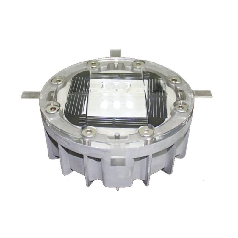 These high-quality road studs consist of an aluminium shell flush with the surface and a solar stud made of polycarbonate which can withstand pressure up to 20 tonnes.
