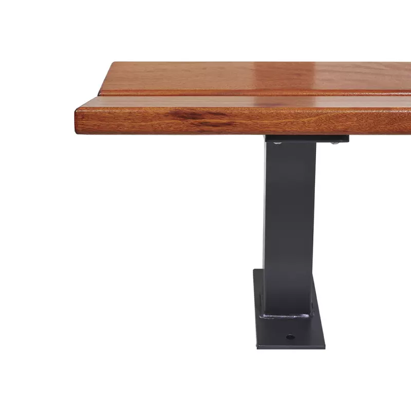 The Pagoda bench features a robust frame constructed from 80 x 80 mm steel tubes. The seat itself is made from exotic hardwood, with each slat being 36 mm deep. You can opt for a stain finish in either light oak or mahogany, providing the flexibility to match the surrounding environment.
