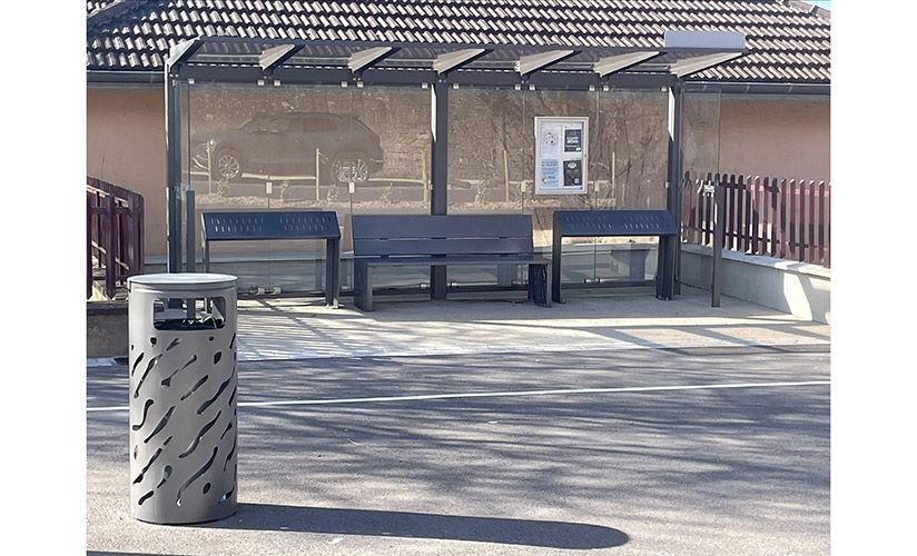 - Bus stop sign: 180 mm high x 815 mm wide, galvanised steel sheet lacquered in RAL 9006.